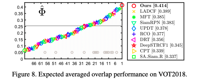 - Figure 9.은 VOT2018 에서의 FPS와 EAO 성능을 시각화하고 있다.