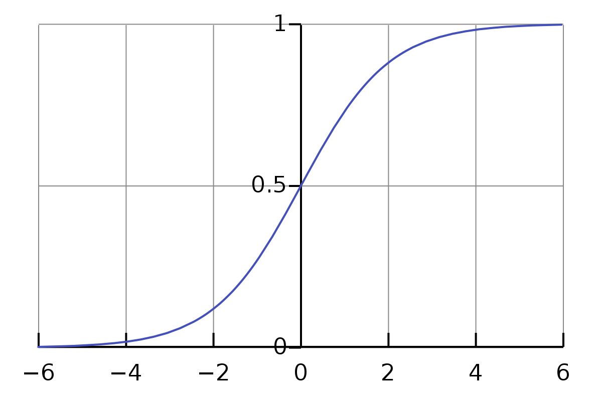 In a binary prediction problem, the output has to be one of two classes(i.e. 0 or 1, yes or no, etc.). Referring back to the previous linear model, the machine can produce values greater than 1 or less than 0 depending on the weight $w$. Here, we will use an activation function called sigmoid function to limit the range of the output.